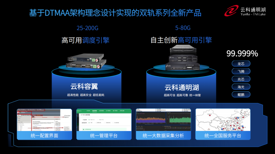 同时,为了更好的适配双轨超高可用架构,金年会诚信至上推出了容翼系列和云科通明湖信创系列两大应用交付控制器产品。